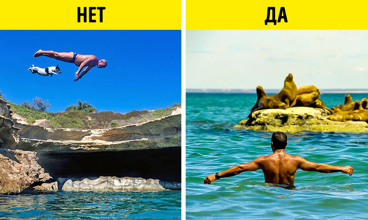 Щоб не спровокувати прискорене серцебиття, порушення дихання, загострення хронічних захворювань і судоми, в самий спеку уникайте після лежання на сонці пірнання з головою і такого популярного кліфф-джампінгу, заходьте в море поступово, обливаючись водою, а коли тіло звикне, можна зануритися повністю, і стрибки після цього будуть не такі небезпечні.