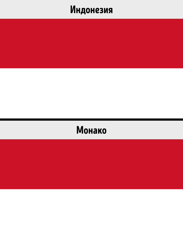Зараз прапори цих країн відрізняються лише своїми пропорціями. У Індонезії вони становлять 2:3, а у Монако 4:5.
