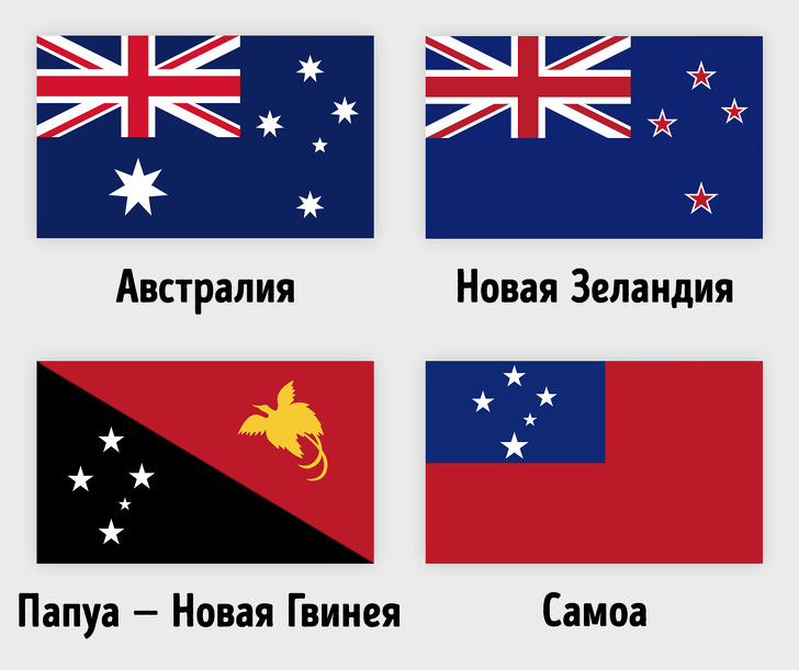 Південний Хрест — знамените сузір'я, видиме тільки нижче екватора. Розмістити його на своєму прапорі, крім Бразилії, вирішили Австралія, Нова Зеландія, Папуа — Нова Гвінея і Самоа.