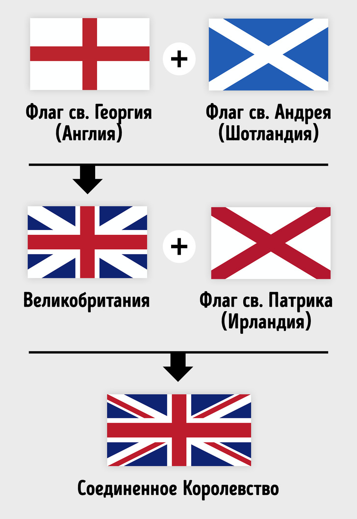 Зауважимо, що Уельс, що входить до складу країни, на прапорі не представлений.