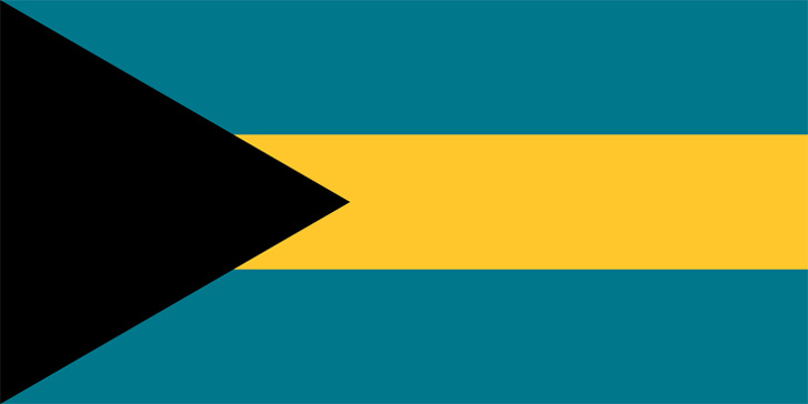 Ще один рідкісний колір, присутній лише на одному державному прапорі, — аквамариновий. Він позначає воду на прапор Багамських Островів. Жовта смуга — це берег, а чорний трикутник символізує єдність і рішучість багамцев.