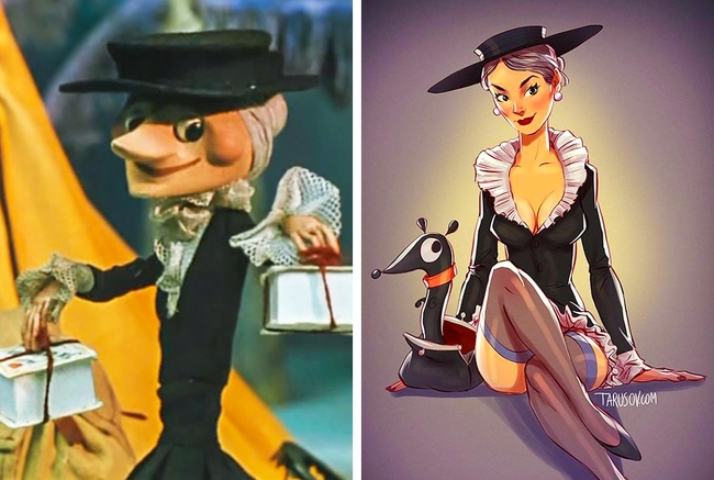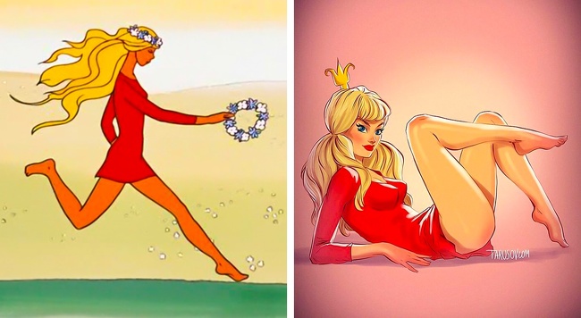 Ілюстратор Андрій Тарусов перемальовує відомих мультиплікаційних персонажів у стилі пін-ап. У своїх роботах художник, зберігаючи образи і характери героїнь, перетворює їх у фатальних спокусниць, які, здається, тільки що зійшли з обкладинок журналів.