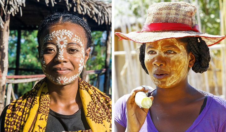 Деякі жительки Мадагаскару наносять на свої обличчя барвисті візерунки білою і жовтою фарбою. Фарба ця робиться з подрібненої кори дерева і наноситься не тільки з декоративною метою. Призначення її — захищати шкіру від сонця і комах, зокрема москітів. Вважається також, що така фарба покращує стан шкіри, тобто служить аналогом крему або маски для особи.