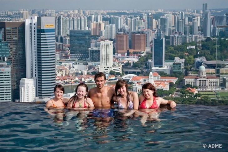 - Побачити знаменитий готель Marina Bay Sands з басейном на даху. Проживання у готелі коштує досить дорого, а натовпу в басейні геть позбавляють задоволення, тому жити там я б не радила. А от відвідати бар на даху готелю варто. Шукайте бар Ce Lavi: ціна входу буде такою ж, як і ціна входу на оглядовий майданчик, але ви отримаєте безкоштовний напій. А якщо ви дівчина і день тижня — середа, то ви можете насолодитися привілеями так званого lady's Night — дня, коли вхід буде безкоштовний, і напій в подарунок (також у багатьох барах міста по середах).