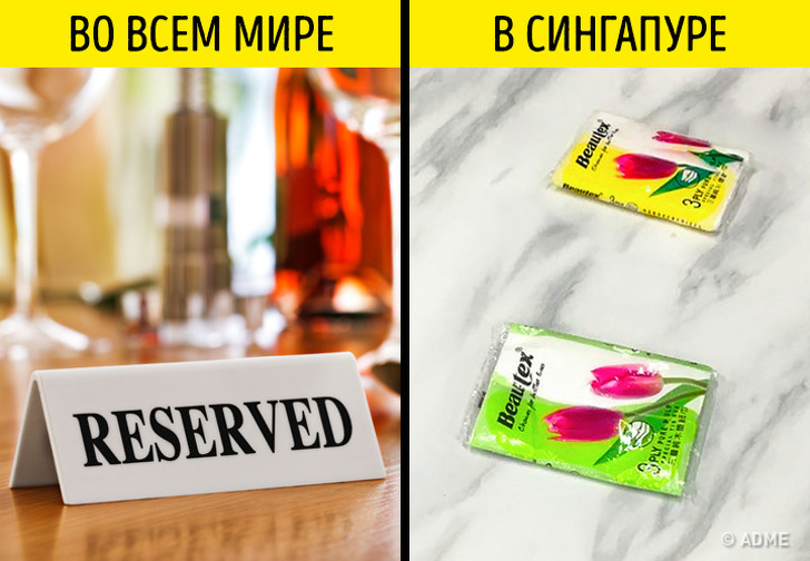 Тобто в Сінгапурі ви можете зарезервувати (заштамповать) за собою столик на фудкорті, просто поклавши на нього упаковку серветок, парасольку, проїзний, пластиковий пакет, пляшку з водою, і все! Ніхто це не візьме і не займе місце, і всі будуть знати, що тут вже зайнято.