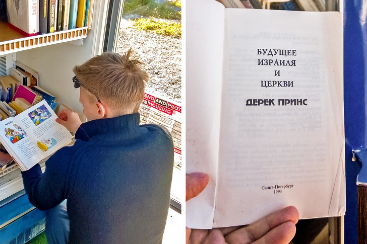 У містечку біля самої дороги ми випадково виявили непрацюючий холодильник, в якому зберігалися безкоштовні старі книги. Це неймовірно, але я знайшов видання, яке було надруковано в Петербурзі 25 років тому