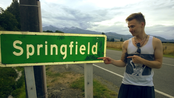 По дорозі на іншу сторону Південного острова абсолютно несподівано здійснилася моя мрія: я побував, мабуть, в самому відомому містечку світу, точне місце розташування якого достеменно ніхто не знає. Звичайно, ніякого відношення до мультсеріалу ця місцевість не має і будиночка сім'ї Сімпсон ми так і не знайшли, але одне несподіване відкриття ми все-таки зробили.