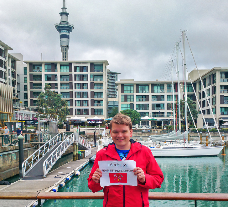 Від Петербурга до Окленда по прямій лінії близько 16,5 тис. км, приблизно стільки ж і до Південного полюса в Антарктиді.