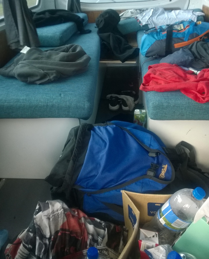 З мінусів ночівлі в нашому мінівені — це відсутність ковдр, так як вранці практично завжди було дуже холодно, а також відносно невеликий простір, яке досить швидко заповнюється речами.