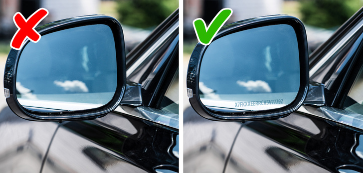 При маркуванні на лобове скло, вікна і дзеркала наносять VIN-номер — ідентифікаційний номер транспортного засобу.