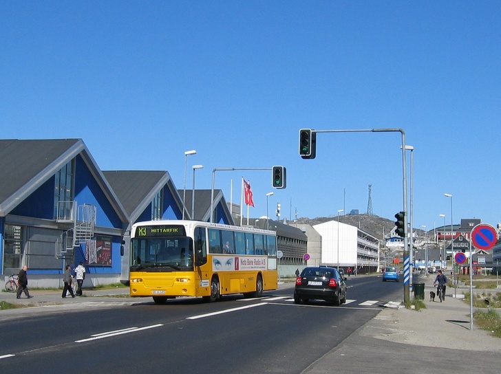 Дороги в Гренландії є тільки в межах населених пунктів, а якщо вам потрібно потрапити з одного міста в інше, то в цьому випадку доведеться зробити це по морю або по повітрю — на вертольоті або літаку. Рейси здійснюються авіакомпанією Air Greenland, яка також здійснює регулярне сполучення зі столицею королівства — Копенгагеном.