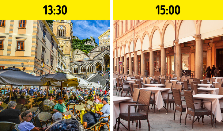 Але тут справа в іншому: якщо ви не встигнете, наприклад, потрапити на обід по італійському розкладом, цілком можливо, що вам зовсім не вдасться пообідати. Звичайно, закладів фастфуду працюють цілодобово, а ось ресторани з автентичною італійською їжею, швидше за все, будуть закриті. А вже якщо ви не встигли пообідати в маленькому містечку, то, як кажуть, пиши пропало. Закритися можуть навіть супермаркети.