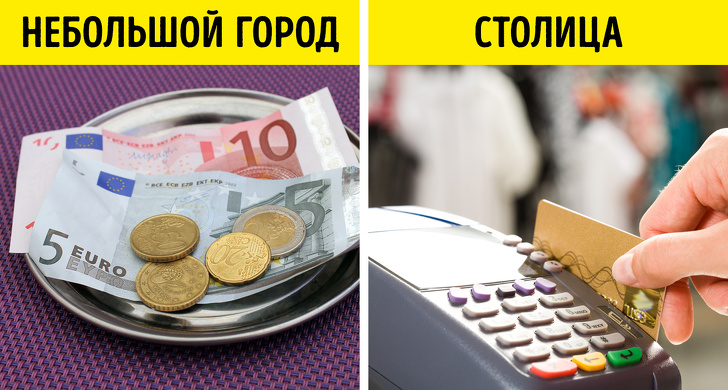 У великих містах можна розплачуватися тільки карткою. В маленькі населені пункти краще приїжджати з готівкою: там не завжди у вас буде можливість оплатити покупку карткою, навіть якщо ви побачите, що у продавця є термінал для безготівкового розрахунку. Вся справа в тому, що в Італії дуже високі податки на оплату картами, тому невеликим торговим точкам невигідно приймати суму менше 5 євро до оплати карткою. Та й взагалі платити менше 5 євро по карті вважається поганим тоном.