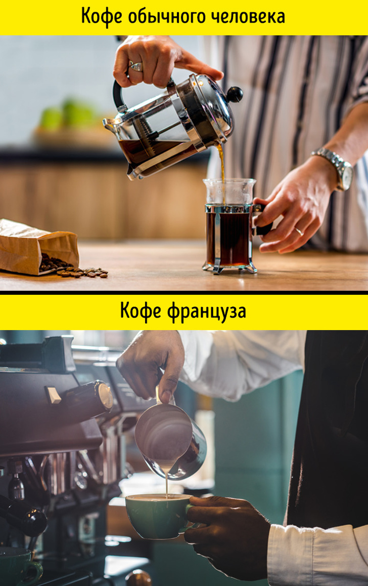 Таким чином, виходить, що саме французьке пристрій для приготування кави зобов'язане своїм існуванням італійцям. До того ж в паризьких кафе ви навряд чи зможете покуштувати звичний напій з френч-преса: у більшості закладів найпопулярнішим напоєм залишається еспрессо, який готують у великих кавоварках.