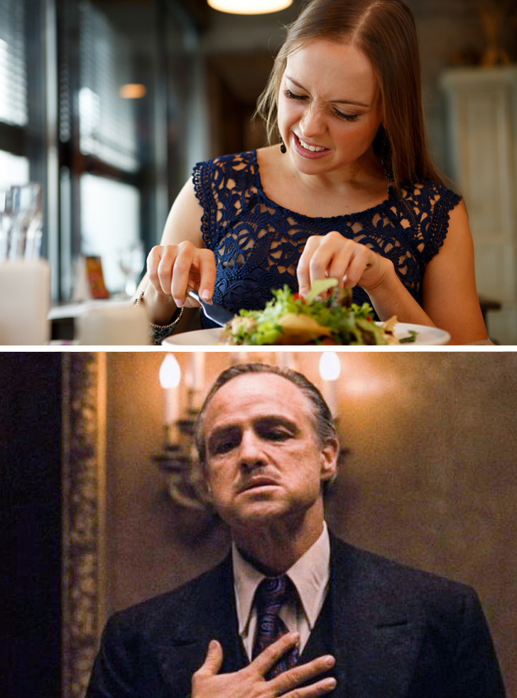 - Не пяльтесь в тарілки сусідів у закладі: навіть якщо у вас просто прокинулося туристське цікавість, з боку це виглядає як прояв жадібності та заздрості. Мигцем глянути можна, але якщо вас все-таки зловили на цьому, можна викрутитися, сказавши: «Відмінно виглядає!»