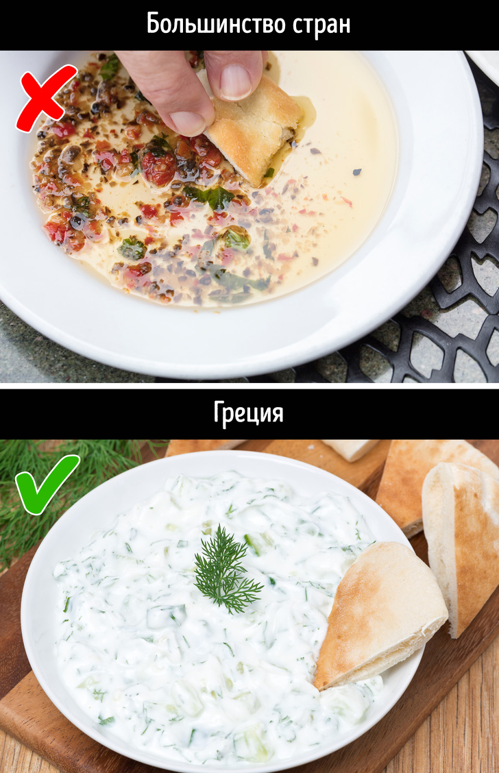 - Одна з небагатьох країн, де, слава Зевсу, ніхто вас не засудить за макану хліба в соуси або підливи. Це ж така смакота, навіщо відмовляти собі в задоволенні? Також тут простіше дивляться на те, щоб запропонувати вам спробувати що-небудь зі своєї тарілки або пригоститися з вашої, зрозуміло, в рамках пристойності.