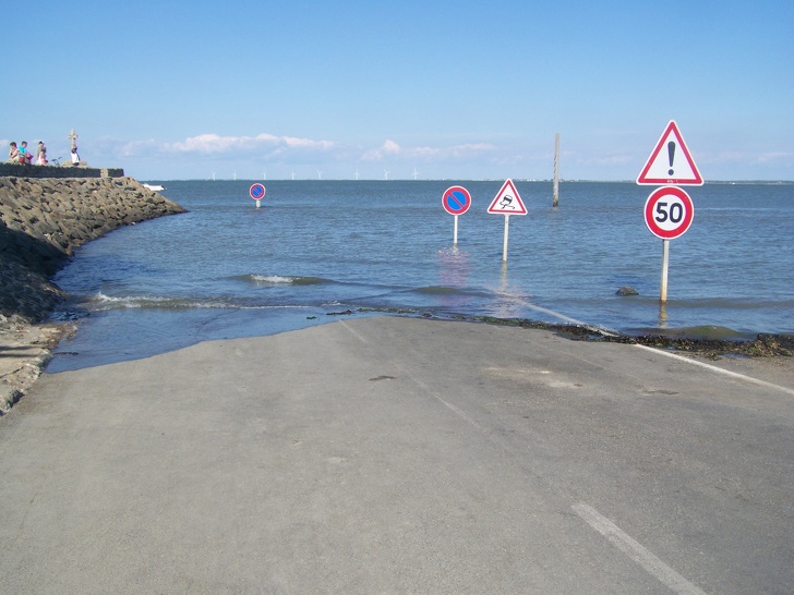 Раніше потрапити з великої землі на острів Нуармутье можна було виключно вплав. Потім протоку оголив вузьку смужку дна, по якій і проклали дорогу. Однак вона працює всього кілька годин на день: під час припливу траса йде під воду.