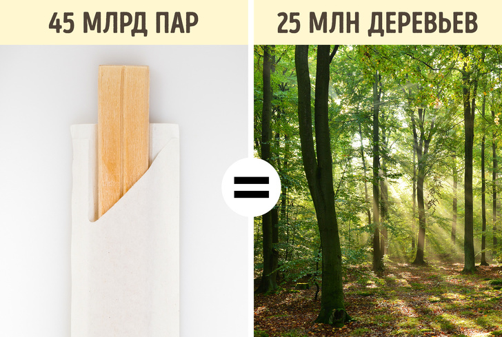 - Жителі Китаю щорічно використовують і викидають 45 млрд пар одноразових дерев'яних паличок.