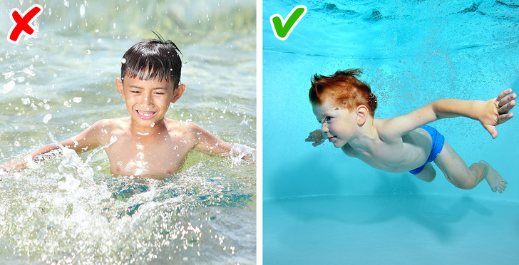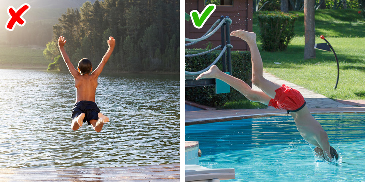Вдаритися об воду — це все одно що впасти з розмаху на тверду землю: буде дуже боляче. Тому, якщо дитина освоїв плавання і хоче пірнати, витратьте час на те, щоб навчити його робити це правильно.