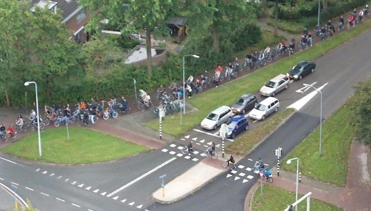 У Нідерландах живе близько 16 млн осіб і понад 18 млн велосипедів. А в Амстердамі кількість двоколісних засобів пересування в 4 рази перевищує кількість автомобілів. Не дивно, що при такій великій любові голландців до цього виду транспорту пробки з велосипедистів в цій країні абсолютно звичайне явище.
