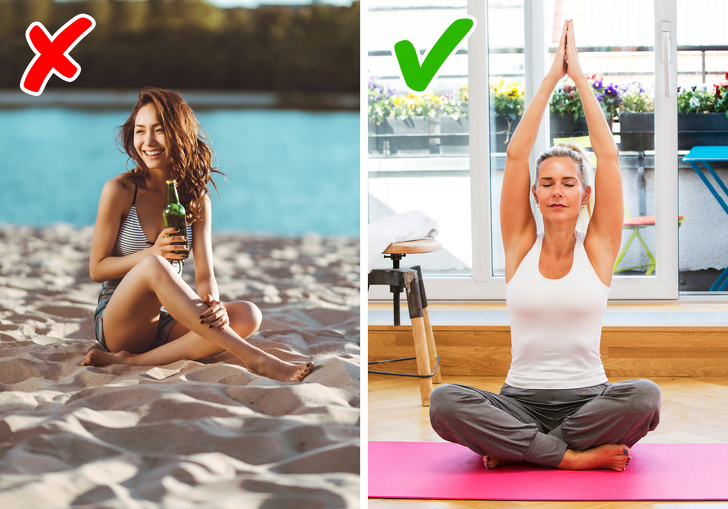 Навіть якщо ви звикли до багатогодинних тренувань у залі, дотримуватися такої програми у відпустці досить складно. Та в цьому немає необхідності: досить влаштовувати собі невеликі навантаження просто заради підтримки тонусу. Можна грамотно поєднати приємне з корисним, спробувавши який-небудь новий вид активності, поширений в місці відпочинку: серфінг, сноубординг, йогу або альпінізм.