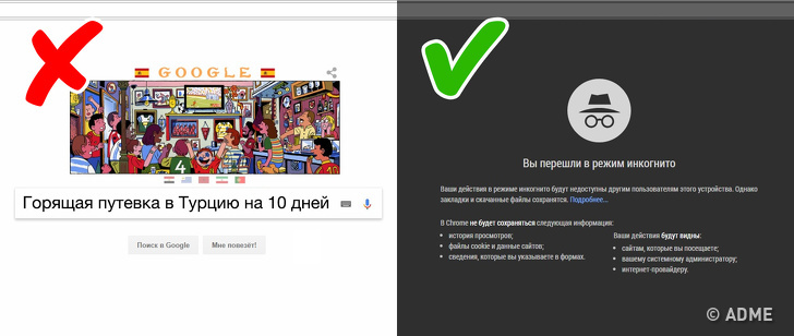 Усього цього можна уникнути, якщо шукати квитки в режимі браузера «інкогніто». Так ви не залишите в інтернеті слідів, а авіакомпанія не зробить вам невигідних пропозицій. Для кожного браузера існують свої способи задання режиму «інкогніто». Наприклад, для Google Chrome-це поєднання клавіш Ctrl + Shift + N.