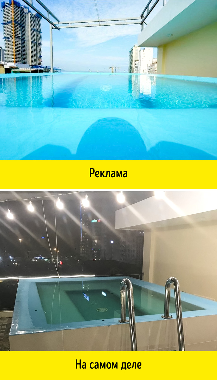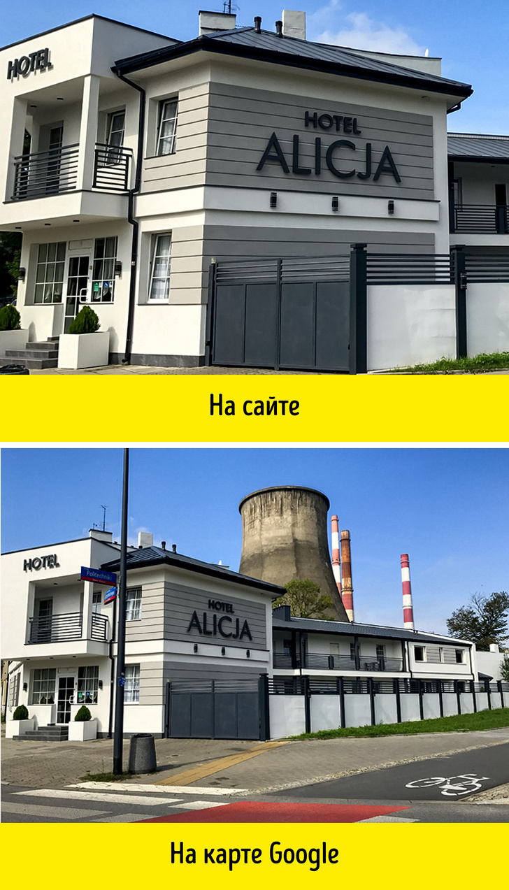 Рекламні фотографії готелів часто недостовірно відображають дійсність. Власники маскують недоліки і знімають так, щоб візуально приміщення виглядало більше. Як виглядає готель, краще розкажуть власні знімки на сайтах з відгуками або в инстаграме, якщо скористатися пошуком по геотегам або назвою готелю. Так можна дізнатися і про приємні бонуси в номері, це може бути термометр в душі або безкоштовний мобільний телефон на час відпочинку.
