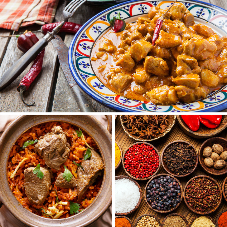 Величезна кількість спецій (куркума, імбир, чилі, кмин, гвоздика, кардамон) не тільки надає стравам індійської кухні дивовижний і насичений смак, але і благотворно позначається на організмі: прянощі захищають від ракових захворювань і хвороби Альцгеймера, надають протизапальну дію, налагоджують процес травлення.