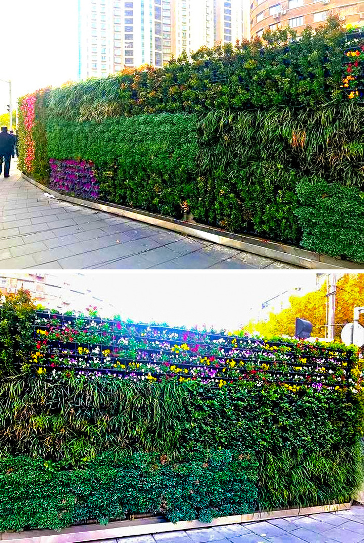 На будівельних парканах часто встановлюють парові очищувачі повітря, щоб пил і бруд залишалися в межах будівництва. Ну а щоб не псувати вигляд, чому б не прикрасити їх квітами і зеленню.