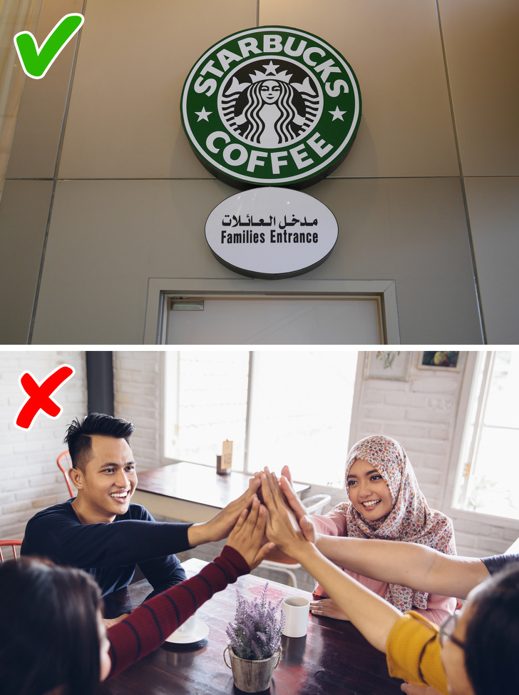 Великі західні компанії, такі як Pizza Hut, mcdonald's, Starbucks, не бажаючи втрачати клієнтів, також відмовляються від загальних залів, за що стають об'єктами критики ліберально налаштованих громадян. В країні є також місця, де статева сегрегація суворо не дотримується: лікарні, банки і медустанови.