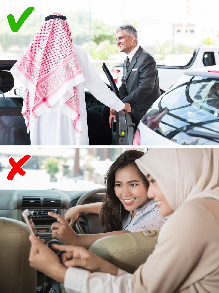 А ось цей пункт зовсім скоро стане міфом. За останні роки в країнах Перської затоки був прийнятий цілий ряд законів щодо лібералізації прав жінок. У вересні 2017 року король Саудівської Аравії видав указ, що дозволяє мешканкам країни водити авто. Дозвіл вступить в силу в червні 2018 року. Втім, щоб сісти за кермо, автолюбительницам потрібно буде отримати дозвіл від опікуна. Поки ж водіння автомобіля, на жаль, поза законом.