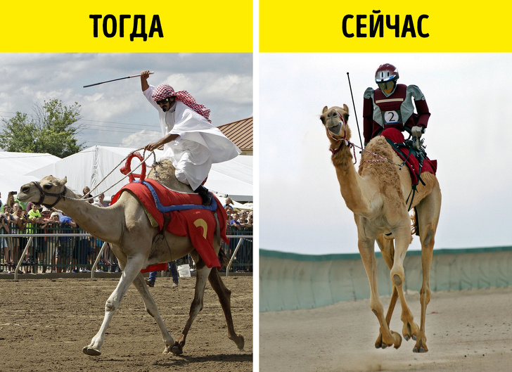 Замість традиційних скачок в Дубаї влаштовують верблюжі перегони роботів, які вже встигли стати багатомільйонної індустрією. Роботи замінюють жокеїв-людей, вони легше і володіють більшою гнучкістю, від чого швидкості і загострення пристрастей в бігах в рази збільшуються. Вартість кожного такого робота — від $ 300 до $ 10 000.