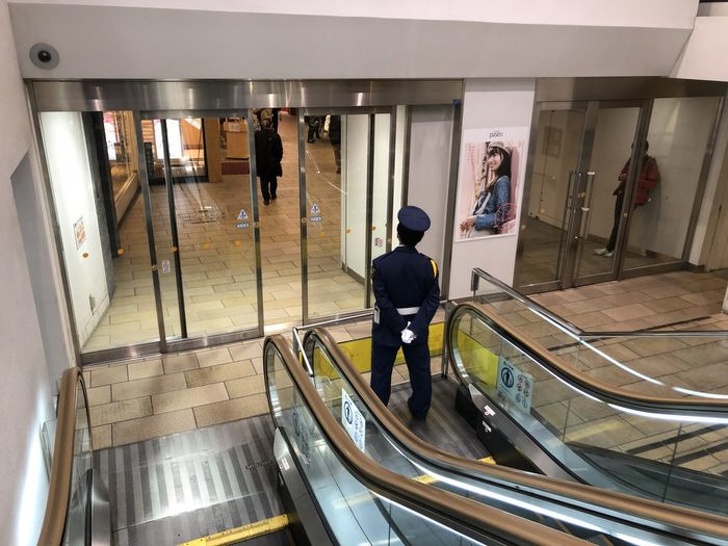 В одному з торгових центрів міста Саппоро зламався ескалатор. Його тут же обгородили, повісили таблички з попередженнями і вибаченнями за незручність. А ще поставили спеціального службовця. Його робота — просто стояти за огорожею біля зламаного ескалатора. Так, на всякий випадок.