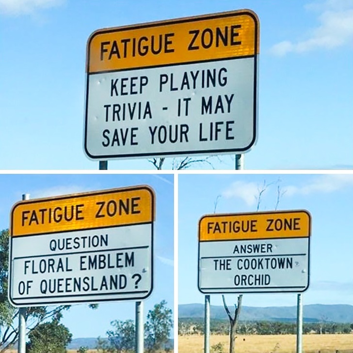 13. Деякі дороги в Австралії настільки довгі і нудні, що знакам доводиться розважати водіїв