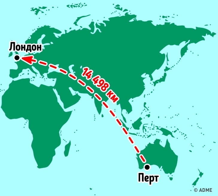 Літак вилетів з міста Перт, який розташований на західному узбережжі Австралії, а приземлився в 3-м за величиною аеропорту світу — лондонському Хітроу.