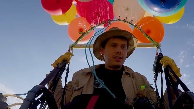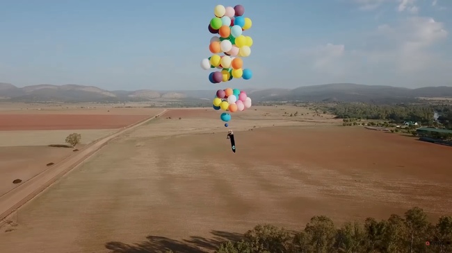Тому і його команда практично вичерпали запаси гелію, коли остання спроба нарешті виправдалася: екстремал-мрійник відправився в чарівний політ над околицею Йоганнесбурзі, ПАР, верхи на стільчику і сотні куль. У загальній складності «літальний апарат подолав 25 км; максимальна висота досягла 2 400 м.