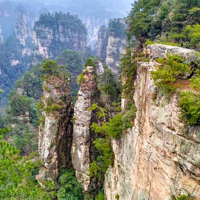 Ліс з величезних кам'яних колон, що піднімаються до 1 км у висоту і справді схожий на пейзаж іншої планети. «Чжанцзяцзе» має своїм особливим мікрокліматом. Тут часто бувають тумани, і тоді і справді здається, що скелі парять в повітрі. У заповіднику можна знайти багато потаємних куточків зовсім без людей (особливо якщо приїхати не в сезон), і тоді все стає зовсім чарівним.
