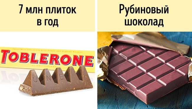Кожен рік в Берні виробляється понад 7 млн плиток шоколаду Toblerone. А нещодавно у Швейцарії винайшли 4-й вид шоколаду - рубіновий.