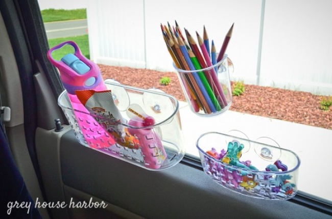Якщо вас чекає поїздка на далекі відстані, а діти небайдужі до творчості, можна прикріпити кольорові олівці і навіть маленькі іграшки в спеціальних контейнерах на присосках. Це прикрасить вашу поїздку. Ідеєю поділилися тут.
