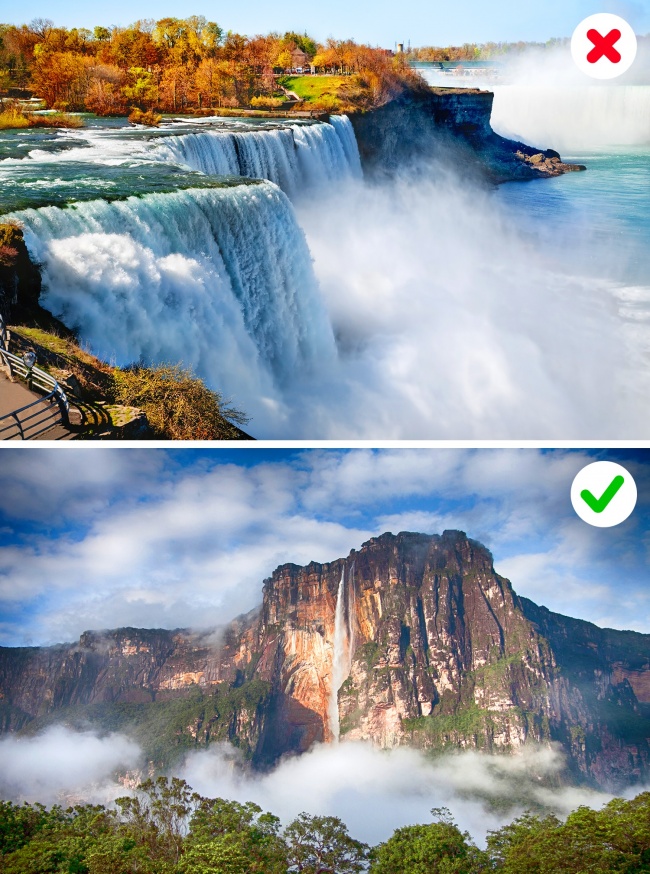 Якщо ви запитайте будь-якого знайомого, який водоспад він вважає найвищим у світі, то з великою ймовірністю почуєте назву Ніагарського. Насправді ж ніагарський водоспад «Підкова», «Фата» і «Канадський водоспад», хоч і вражають своєю шириною, а ось висотою не відрізняються — 53 метри, а видима висота і того менше — 21 метр.