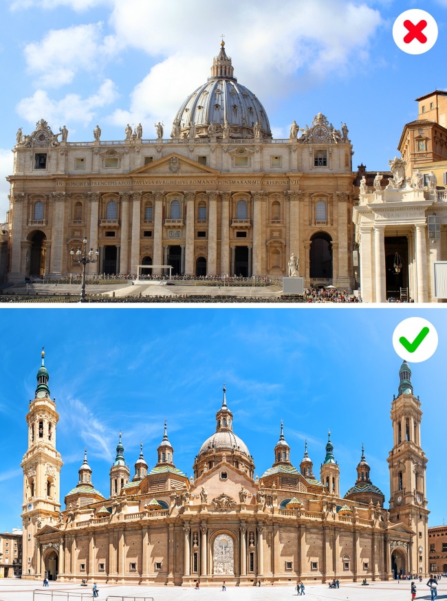 Собор Святого Петра, який всі ми знаємо як серце Ватикану, багатьма помилково вважається найбільшим собором у світі. І хоча його розміри дійсно вражають, адже він може вмістити 60 000 чоловік, а його конкурент — Базиліку Пресвятої Діви Марії Світу в місті Ямусукро, Кот-Д'івуар, вдвічі більше. Вона навіть занесена в «Книгу рекордів Гіннесса» як найбільша церква в світі.