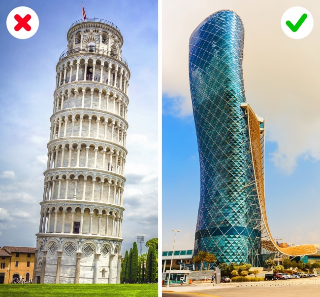 А ось хмарочос Capital Gate, який ще часто називають Падаючою вежею Абу-Дабі, потрапив в «Книгу рекордів Гіннесса» як будівля з найбільшим нахилом у світі — він відхиляється на захід на 18 градусів.