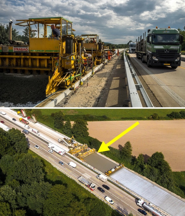 Автобани Німеччини — синонім бездоганності. Вони служать без ремонту 30-50 років, а сам ремонт більше схожий на будівництво з нуля. Технологія нагадує листковий торт: морозостійка підстава, геотекстиль, укріплення цементом, цементобетонне покриття і «глазур» — алмазна фрезерування або шар бетону із заповнювачем.