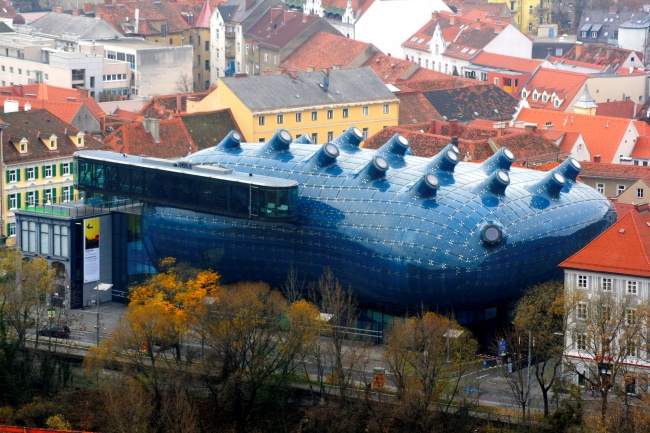 Кунстхаус в Граці називають «Дружнім інопланетянином». Він ефектно виділяється на тлі черепичних дахів старих будинків. За задумом дизайнерів, це свого роду діалог між традицією і авангардом. І якщо спочатку ідея здавалася дивною, то тепер Музей сучасного мистецтва — символ міста.
