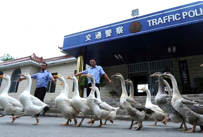 У провінції Сіньцзян всерйоз подумують взяти на службу гусей. Завдяки пернатої бригаді вдалося запобігти крадіжці мотоцикла з ділянки: злодій отруїв сторожових псів і переліз через огорожу, але дорогу йому перекрили 20 «бійців»-гусей, а на шум прибіг черговий. Вчені кажуть, що потенціал у цих птахів є: панорамне зір, хороший слух і агресія в разі небезпеки.