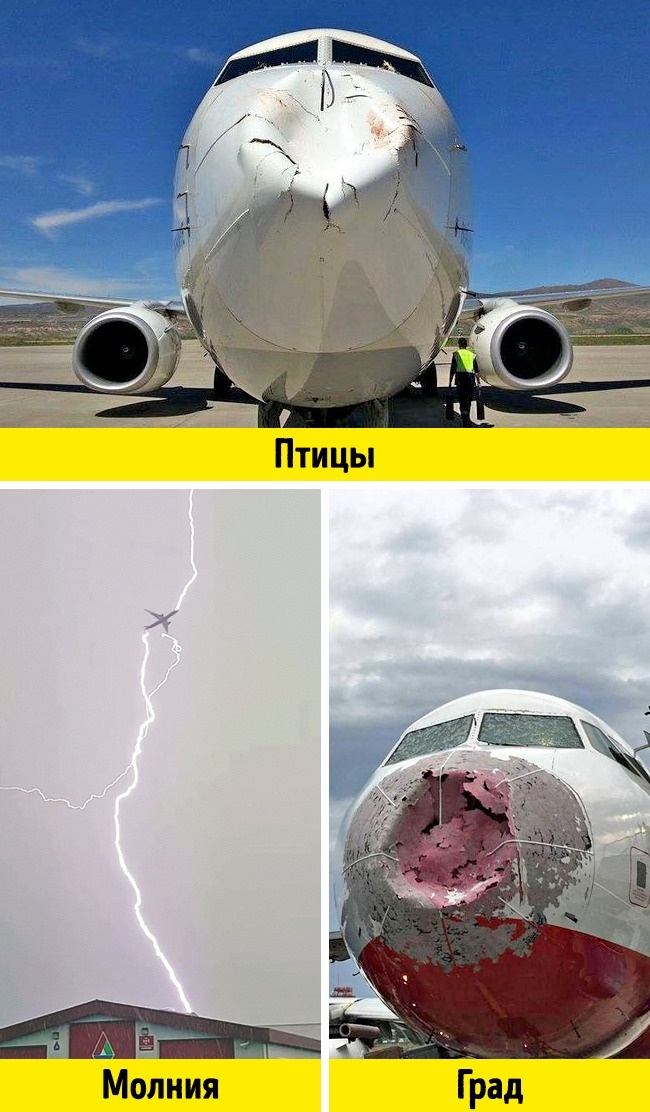 5. Що страшніше — врізатися в птаха, потрапити під град або отримати удар блискавки?