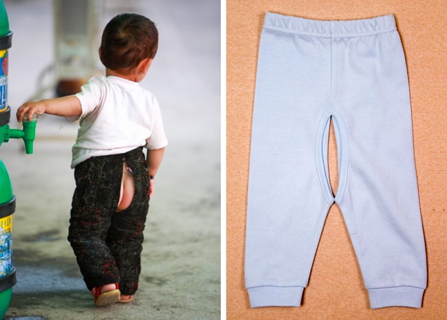 2. У Китаї маленьких дітей одягають в штани з розрізом