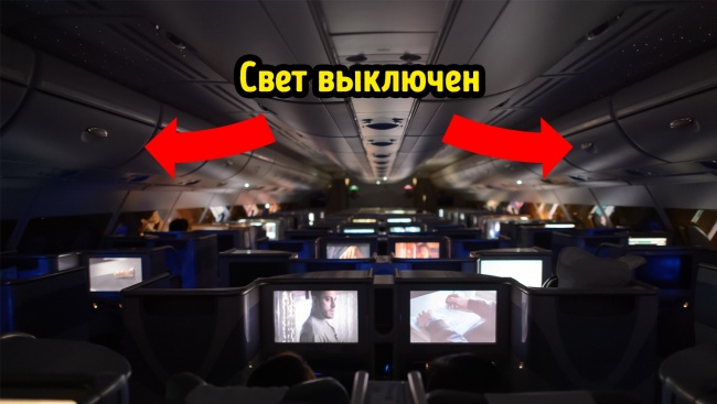 Це відбувається для того, щоб очі пасажирів звикли до темряви. Якщо виникне нештатна ситуація, світло включати не можна, а звиклі до темряви люди краще зорієнтуються в нічний обстановці.
