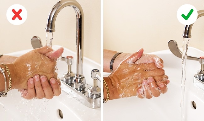 Забруднили — мити, сходили в туалет — мити, погладили тварина — теж мити, проїхалися на громадському транспорті — не ризикуйте, вимийте руки. Природно, перед їжею миємо руки завжди. Як мінімум, 20-30 секунд. З милом. Ретельно промивайте між пальців і під нігтями — кількість бактерій там зашкалює.