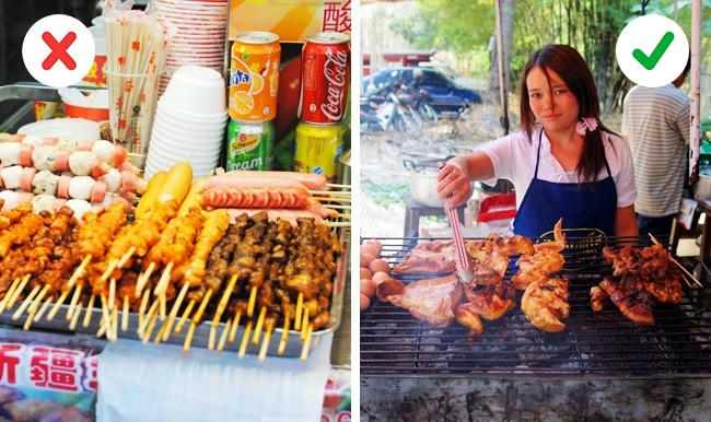 Ваш головний ворог — лежала, давно приготована їжа. Якщо ви вирішили спробувати вуличну їжу, краще, щоб вона була приготована при вас. До того ж процес приготування вуличної їжі — справжнє шоу, яке варте того, щоб його побачити.